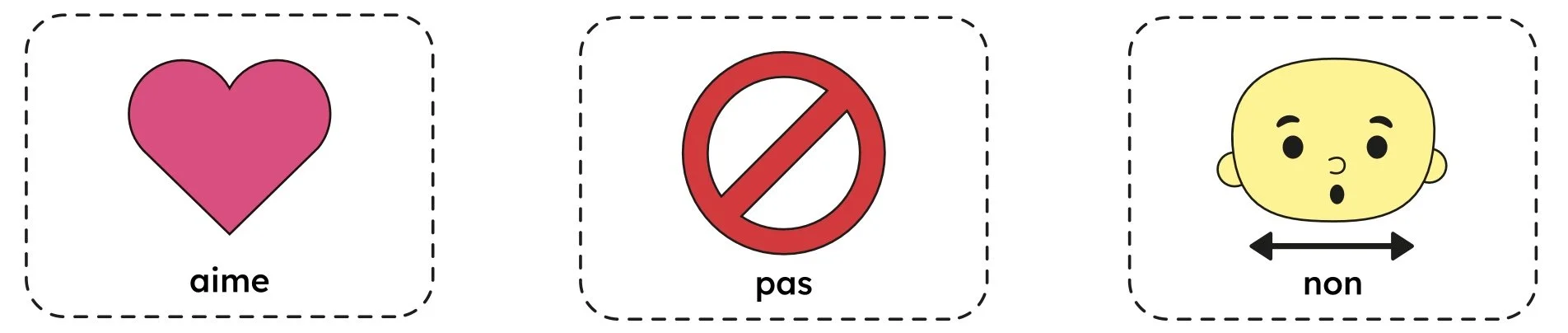 2. Choisissez... quelques pictogrammes simples représentant des objets, actions ou émotions de l'enfant.